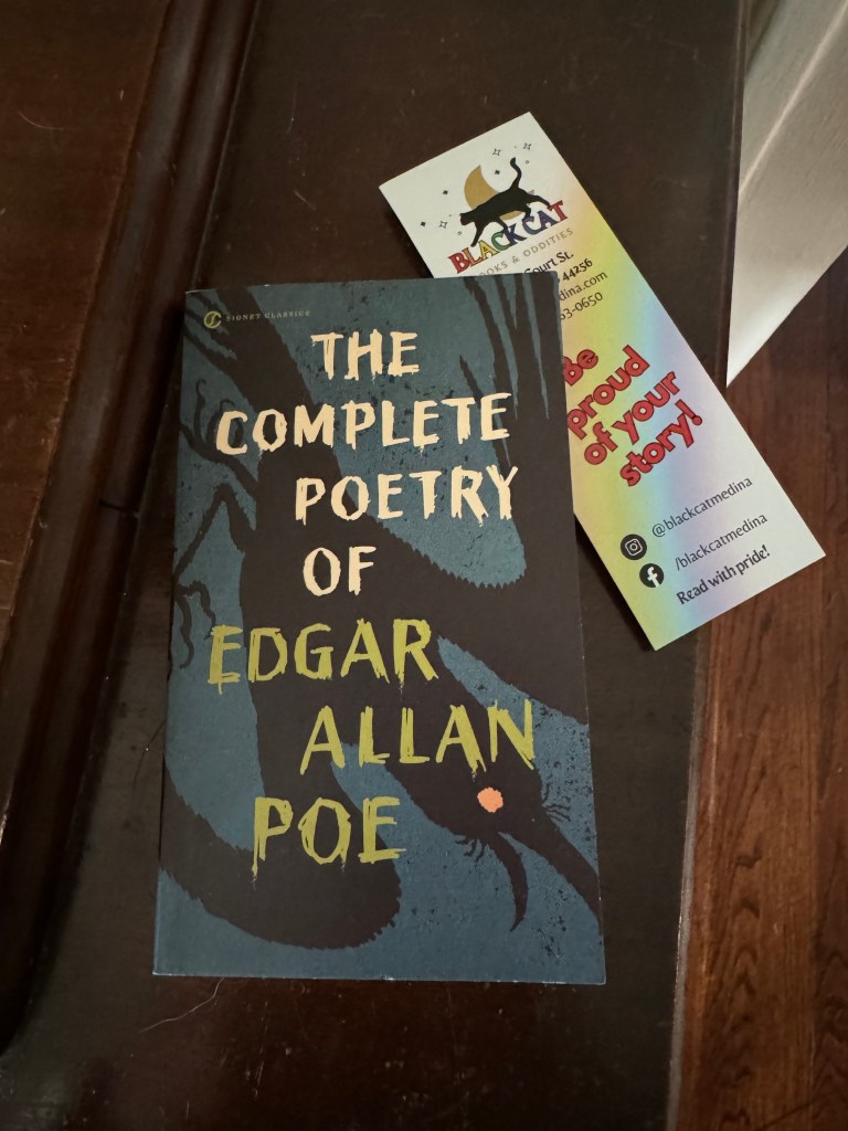 The shop has numerous rooms, each with a different motif ranging from the occult, to magic and Mythology, to a children’s playland and mystery room upstairs. The initial building is a 20th century brick home that has a wonderful front porch and friendly and knowledgable staff. I was enthralled when I found a small volume of Edgar Allan Poe’s poems which was my purchase for the day.